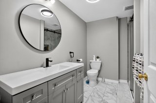Le sous-sol, entièrement aménagé, propose une vaste salle